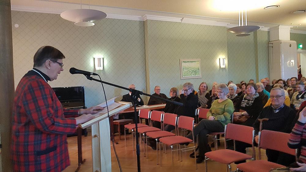 Kaija Vesala esitelmöi aiheesta J.L. Runeberg