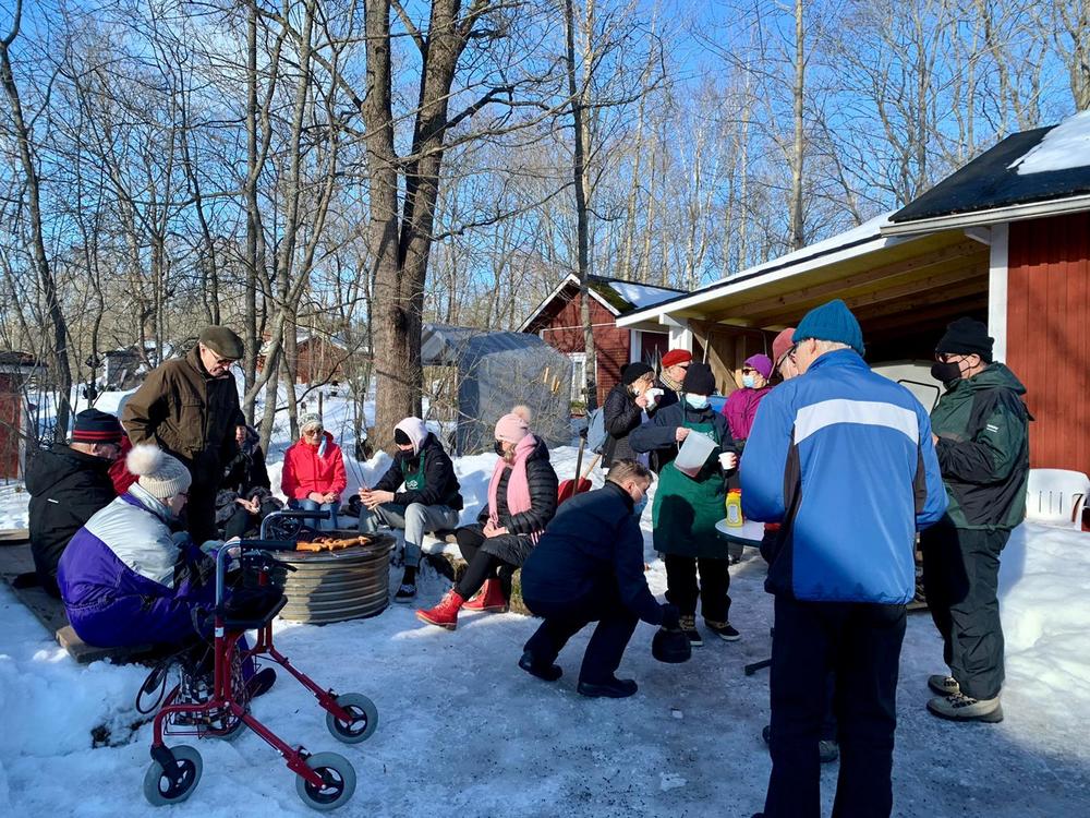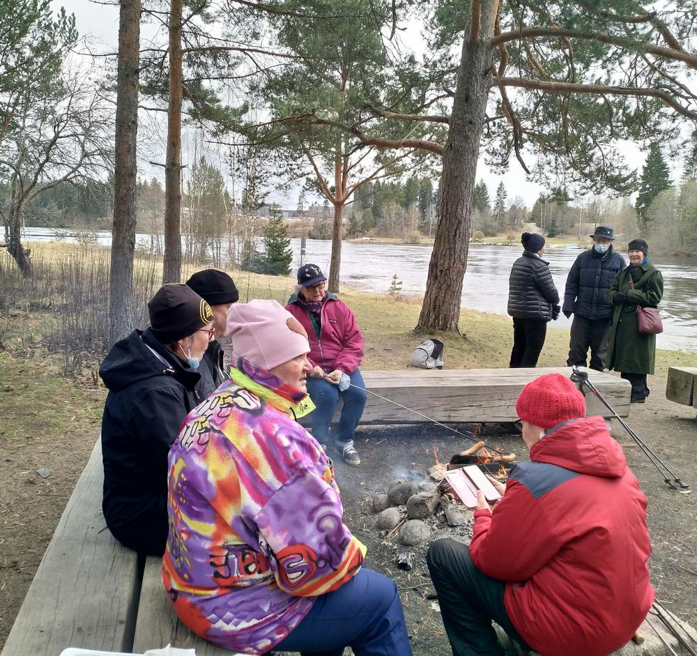 Kevätkokous muuttui koronatilanteen vuoksi makkaranpaistoksi ja nokipannukahviksi. Seniorien 35 henkinen porukka jakaantui kahteen ryhmään ja käveli kauniissa kevätauringossa Tuulensuojalta Partiolaisten majalle Museokortteliin. Osa oli jo valmiina vastaanottamassa makkaratulilla. Nuotion ja makkaran tuoksu kantautui kuulemma kutsuvasti radan alta kävelijöiden neniin. Osa toivoi, että vastaava tilaisuus järjestettäisiin ensi vuonna uudestaan.