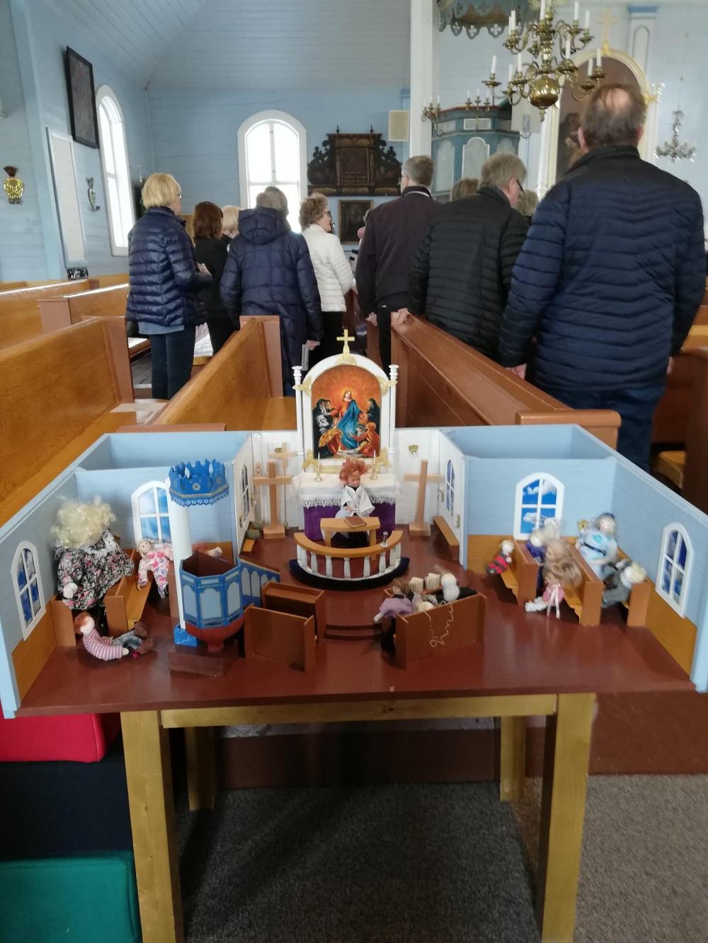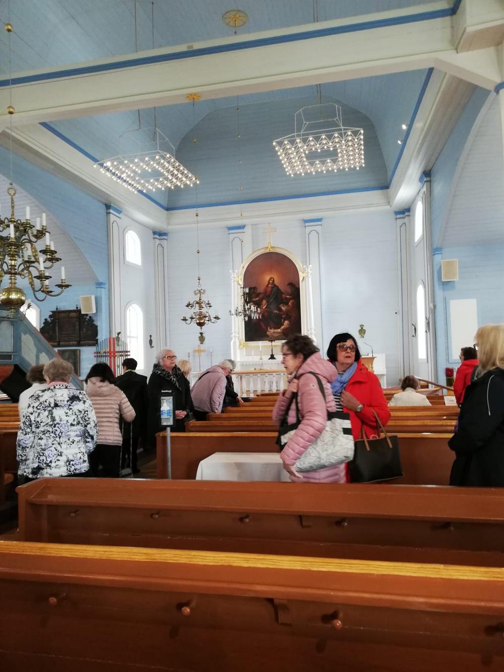 Matkamme jatkuu jälleen ja viimeinen varsinainen käyntikohteemme on Ristiinan kirkko, joka on valmistunut vuonna 1775. Nimen kirkko on saanut Pietari Brahen vaimon Kristiinan mukaan. Opas kertoo meille kirkon historiasta ja esittelee kirkon taideteokset. Hauska yksityiskohta on lapsille tehty pienoismalli kirkosta.