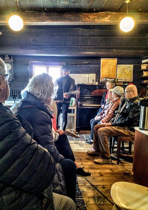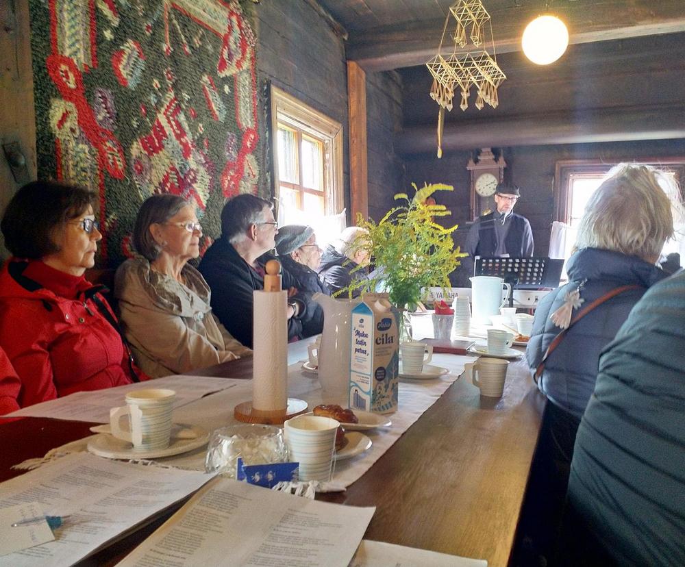 "Kahvin lomassa museon isäntä Jouni Sjöblom viihdytti meitä tarinoilla museosta ja Puolakan suvusta. Saimme nauttia hänen hienosta musiikkiesityksestään. Kuulimme pari oopperalaulua, joista mainittakoon kaunis Jokilaulu Kustaa III oopperasta. Välillä laulettiin yhteislauluja.