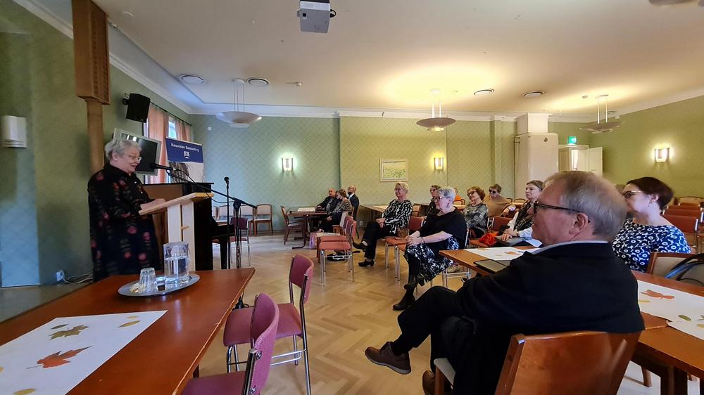 Ohjelmassa oli "Iloa yhteislaulusta". Maisteri Sirkka‐Liisa Huuhtanen säesti mukavia tunnettuja kappaleita ja kertoi sanoittajien ja säveltäjien musiikista .