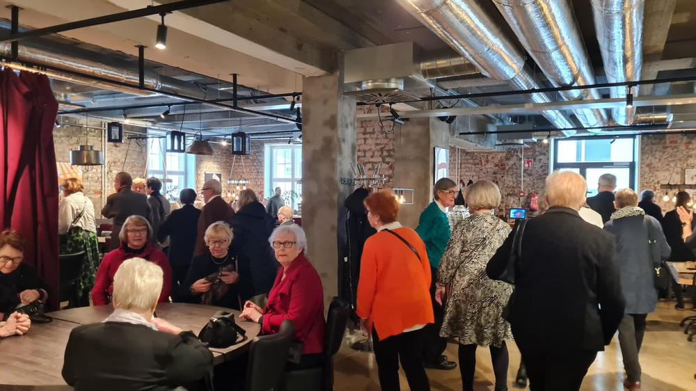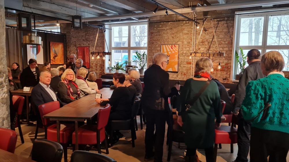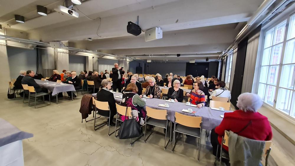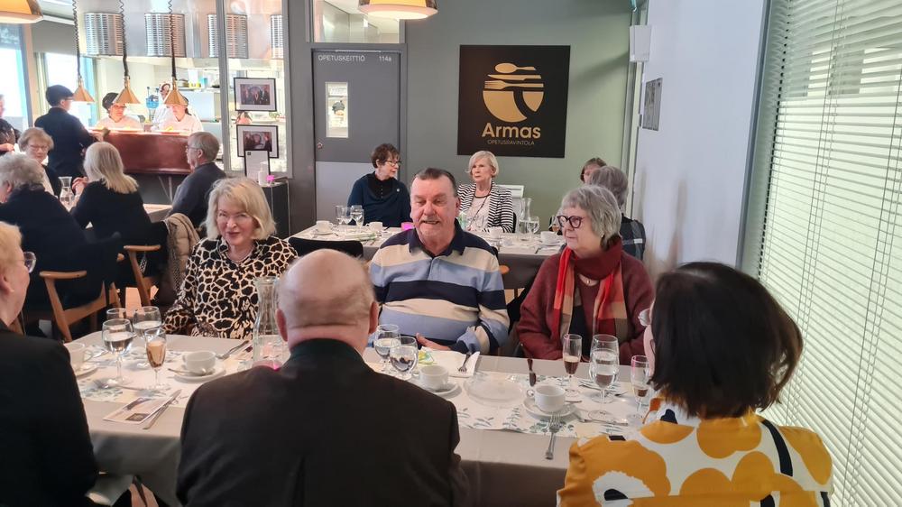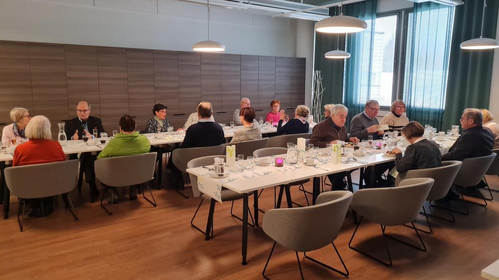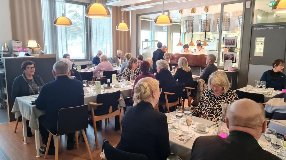 Tapaaminen ystävänpäivän lounaan merkeissä keräsi 80 osallistujaa, joten lounas oli jaettu kahteen kattaukseen.