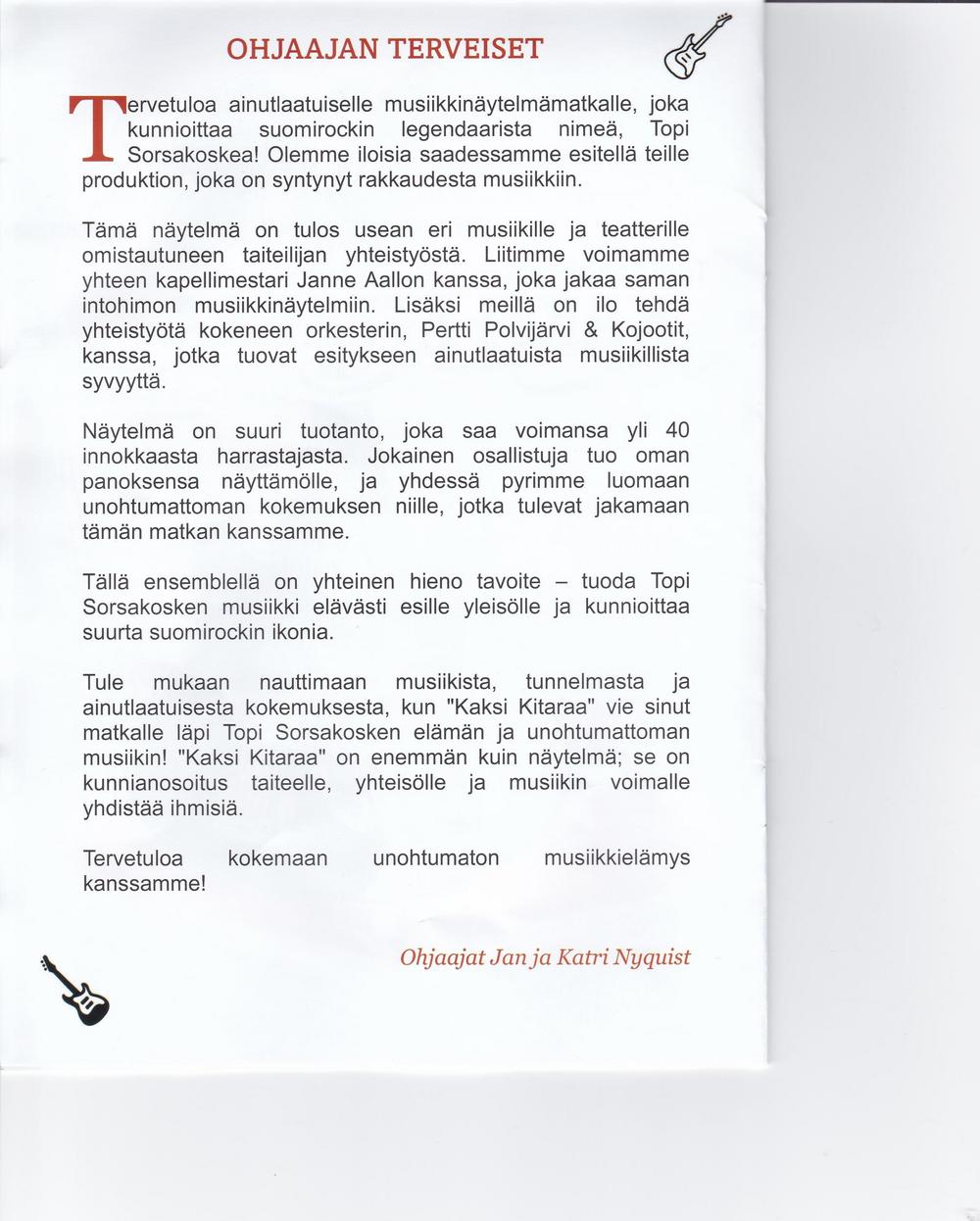 21.7.2024 Kaksi Kitaraa, Topi Sorsakoski musiikkinäytelmä