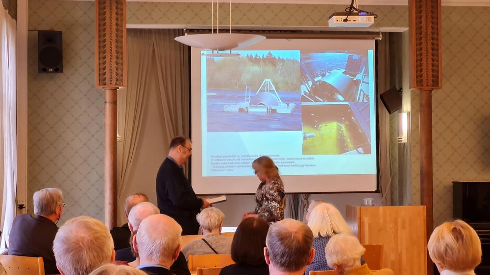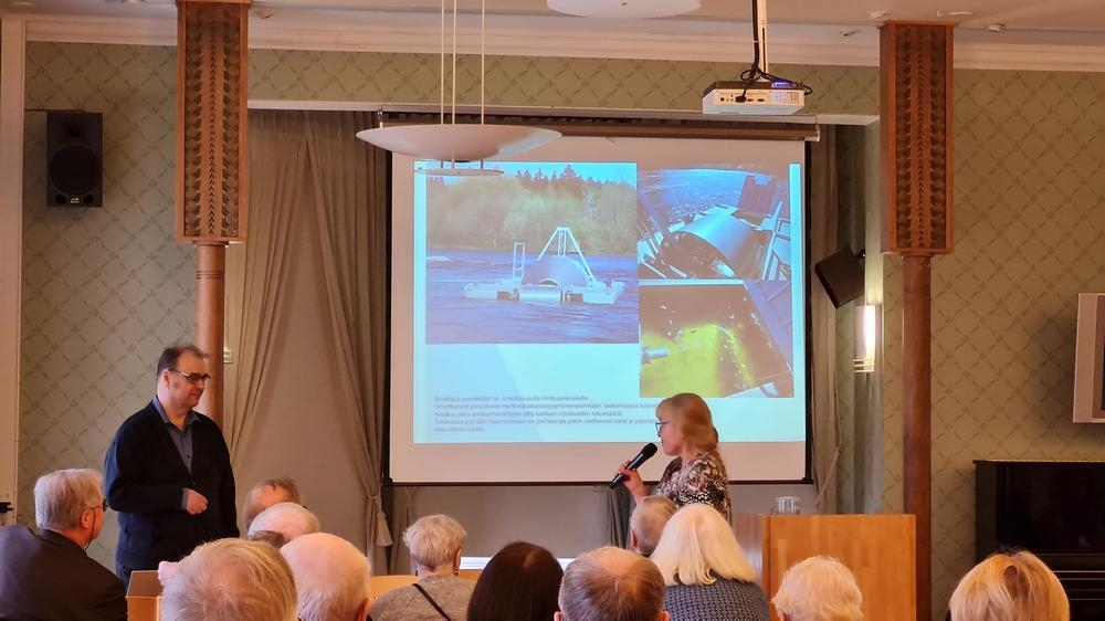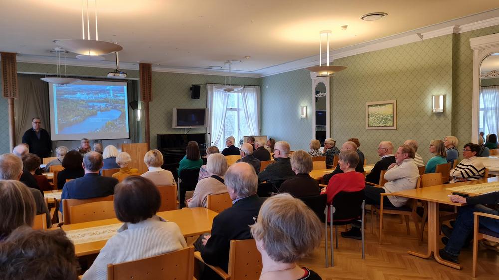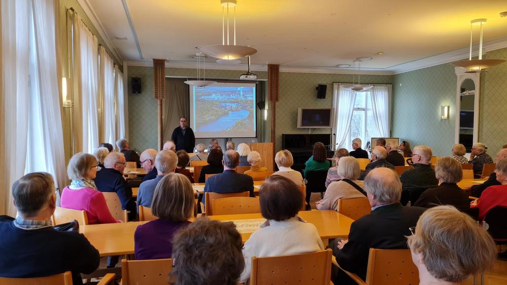 Harri Jussila, jäte- ja kemikaaliasioista vastaava päällikkö UPM:n ympäristö- ja vastuullisuustiimistä kertoi Kyminjoen tilan kehityksestä 100 v aikana. Esitysmateriaali