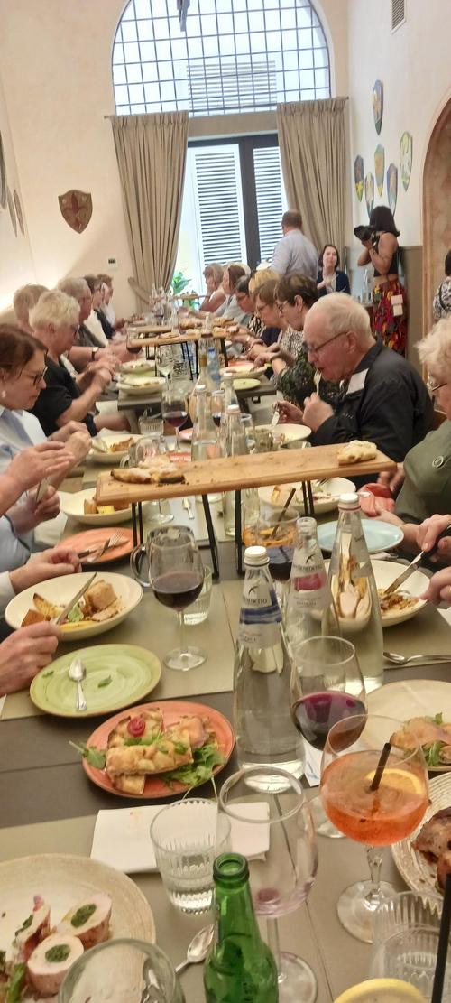 Perjantaina Odotettu retkemme Firenzeen alkoi.Bussissa vallitsi iloinen tunnelma, sillä yhdessä matkustaminen on huippua. Bussimme oppaan johdolla pysähtyy Firenzen keskustaan ja seuraamme liittyy suomalainen kaupungin paikallisopas. Kuulemme Firenzen historiasta, johon voimakkaasti liittyy mm. Medici-perhe ja renesanssitaiteilijat. Näimme goottista tyyliä edustavan Santa Maria del Fiore-tuomiokirkon ja paljon, paljon muuta. Lounaaksi nautimme: Rapeita pinsa leipäpalasia, Pacchero pastaa villisikakastikeella, rapeaa possua, omena chutney, paahdettua indivia salaattia, leipää ja maissilastuja, jäätelöannos, vesi ja viini.