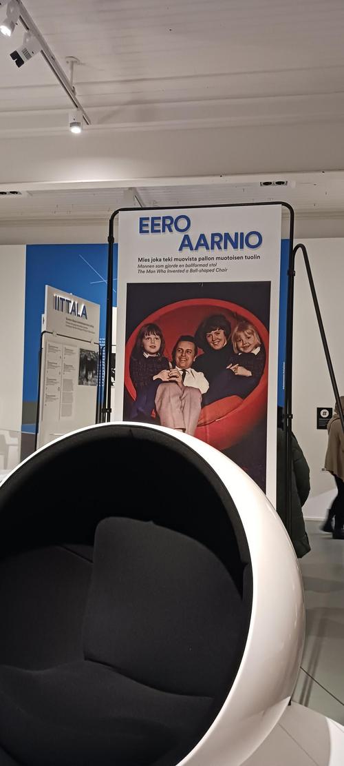 Aloitimme päivän tutustumalla oppaiden johdolla Designmuseoon, jossa ihailimme suomalaista muotoilua kuten Eero Aarnion Pallotuolia ja Marimekon tuotantoa.