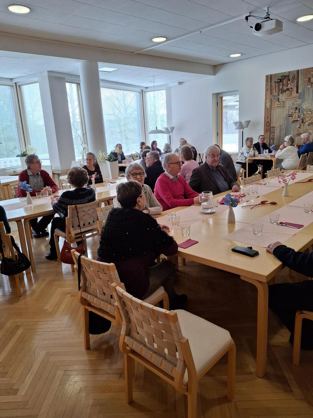 Meitä osallistuneita oli 35 henkeä, ja ruoka oli maittavaa. Alussa Jouko Rantakokko kertoi Koskelan ja Voikkaan Klubin historiaa. Ennen jälkiruokaa Marjo Seki kertoi Satuilevista senioreista ja lausui ystävänpäivärunon. Seija Rajamäki lausui kaksi mieleenpainuvaa omaa "raapaletta"(sata sanaa), jotka olivat syntyneet Satuilevien seniorien ryhmässä. Lounaan kruunasivat täytekakut ja vilkas keskustelu osallistuneiden kesken.