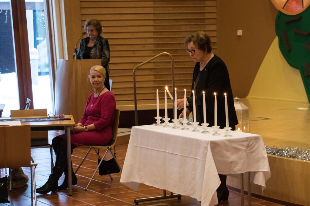 Tilaisuudessa muistettin myös poisnukkuneita sytyttämällä jokaiselle kynttilä. Kynttilöiden sytyttäjänä toimi kunniapuheenjohtaja Raina Jokinen.