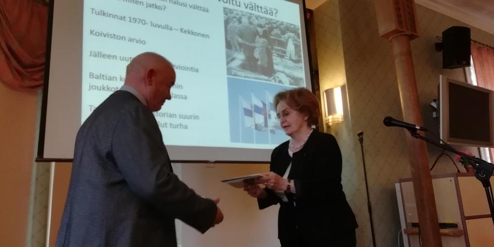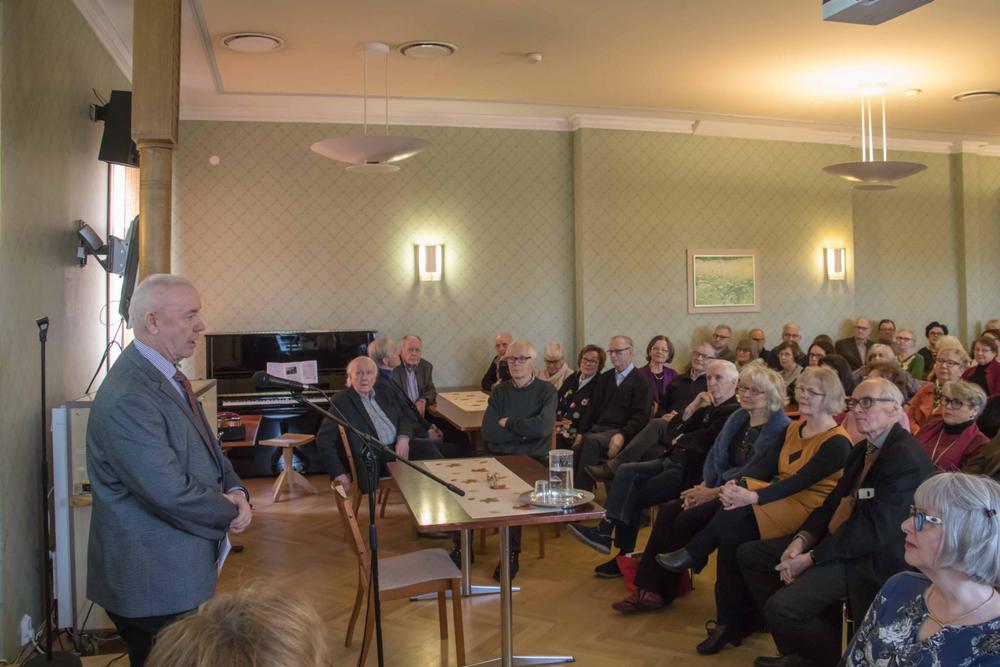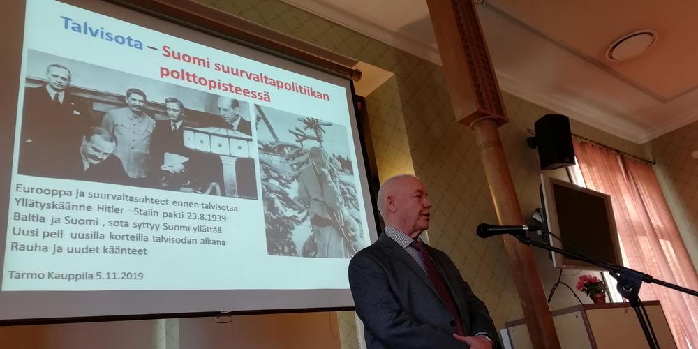 Ev Tarmo Kauppila esitelmöi aiheesta Talvisota – Suomi suurvaltapolitiikan polttopisteessä.